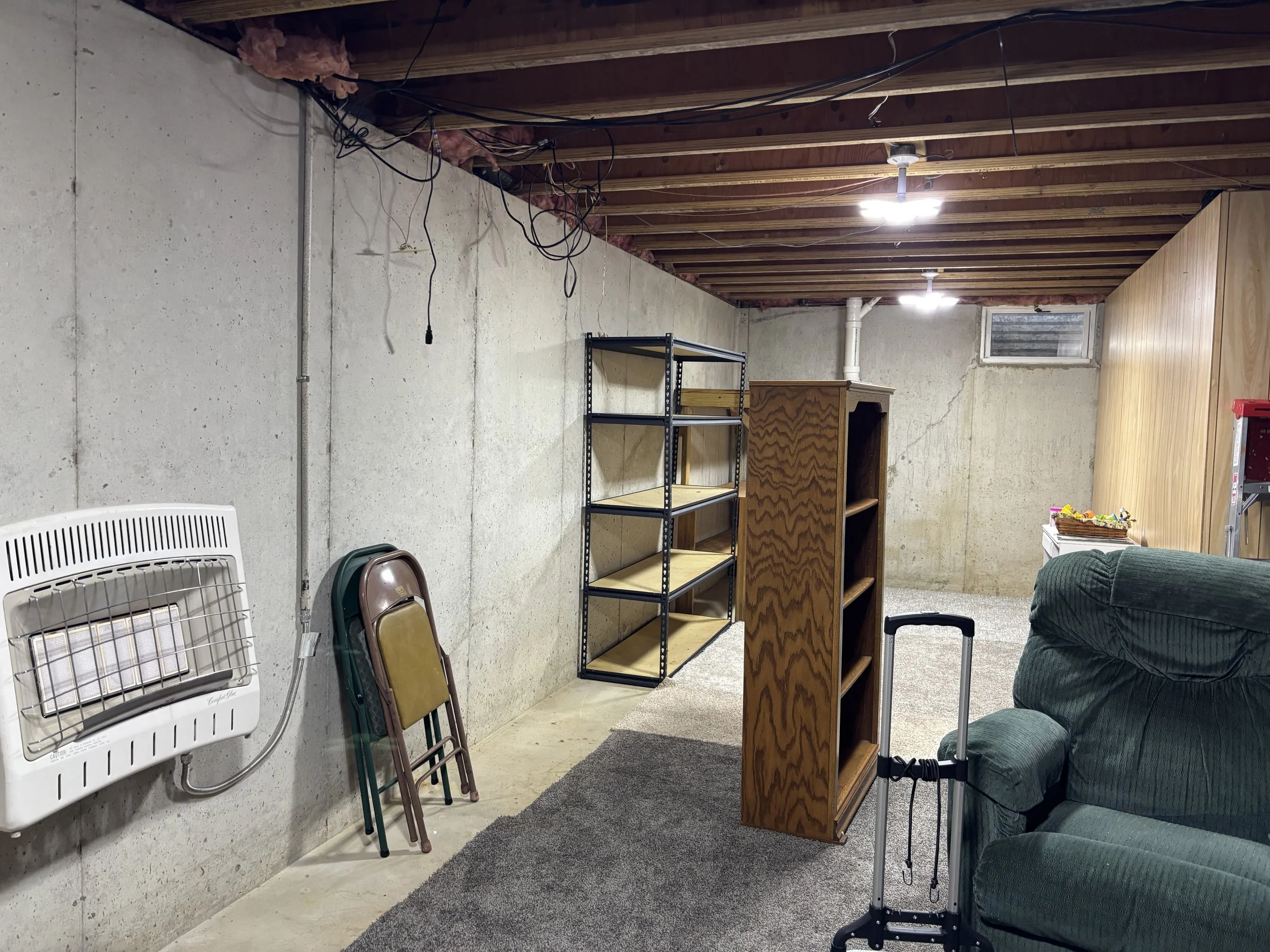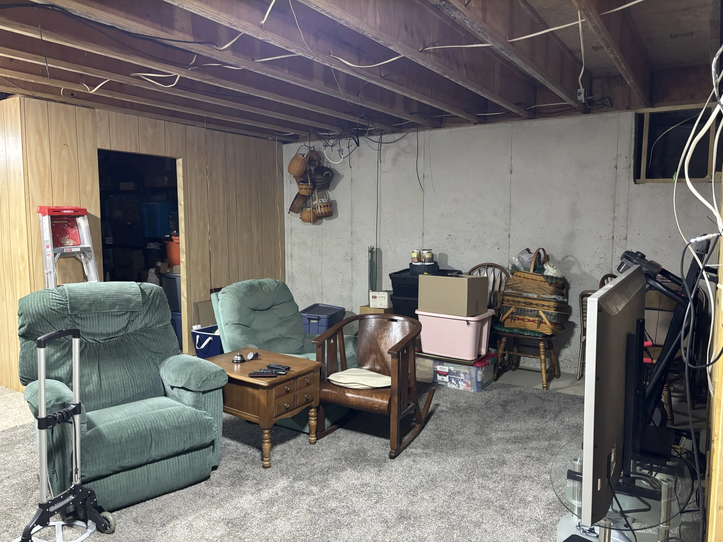 The homeowners have used their basement under their addition sparingly over the years. When the addition was originally designed, the basement was a crucial selling point. The existing home didn’t have one, and the kids would need a place to play and enjoy. The spring of 1997 proved wet and the basement flooded, putting a major damper on the hopes that it would be a haven for the kids as much of their toys, books, and other unsecured items were covered in a muddy film. After the great flood, two smaller instances occurred involving failed sump pumps and the whole enterprise was wrote off, with door closed and useful only for Christmas decor storage and old furniture. Now, the grandkids want a place to hang out and play. The last major flood being in the distant rearview, the homeowners have decided that maybe it was time to finish the basement the way they had envisioned it all those years ago when their kids didn’t have kids of their own.