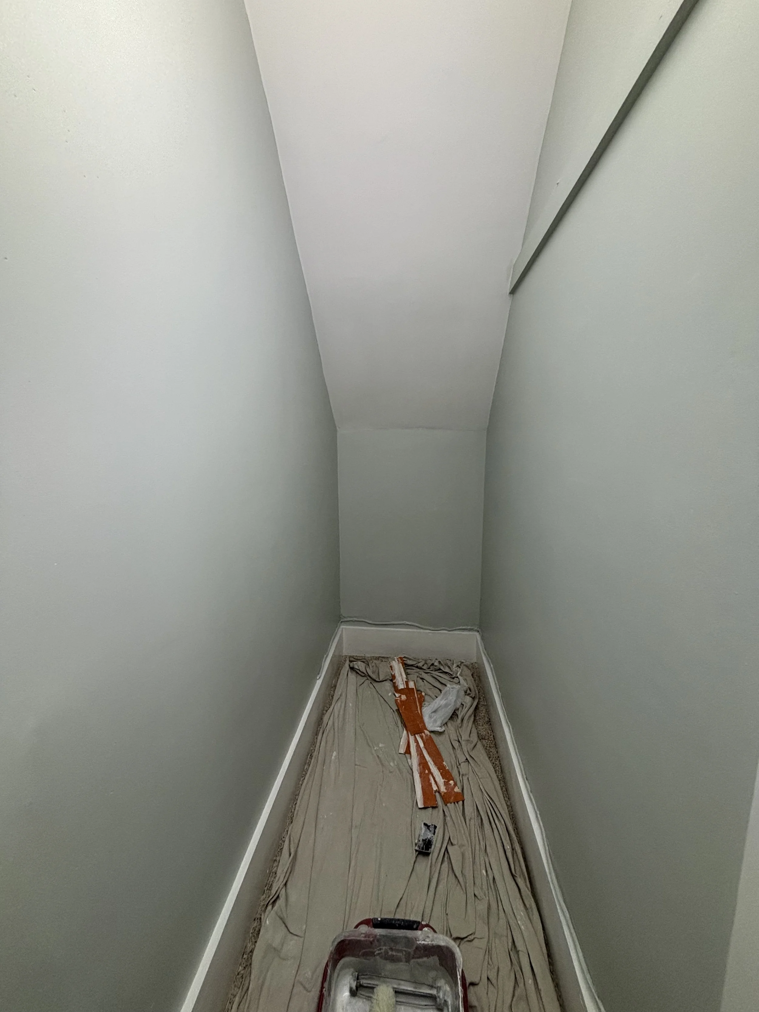 Yes, I could’ve just removed the existing shelving unit and put in a closet system and walked away the same day. The goal of the homeowner though was to improve the space and match it to the existing rooms surrounding it. After installing the last shelf and stepping back, it was clear that this mission was accomplished. This forgotten under-the-stair closet now shines like a new penny (RIP).